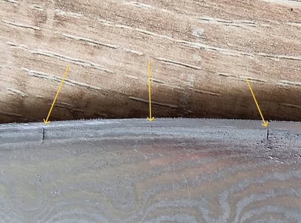 Pull through sharpeners strip metal off your blade leaving an uneven wavy edge. It may seem sharpers at first but soon it will be dull and dangerous. As you strip more and more metal off the blade, it becomes thicker and harder to sharpen leading to more pressure being placed on the blade to pull it through the sharpener. This can cause tiny stress fractures in the metal virtually ruining your knife. Please see the photos and video to the right.